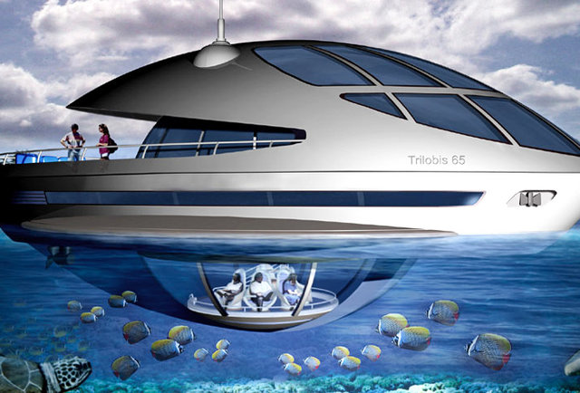 This magical vessel may be on the older end of the concept scale, having debuted back in 2001, but since it still has yet to be realized, it deserves a place on the list. The four-story rig is half boat, half submarine, complete with the amenities you’d expect in an over-the-top luxury boat, plus a whole submerged windowed section beneath to ogle, and be ogled by, all the marine life lurking down below.